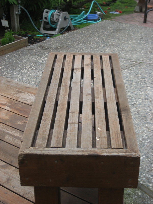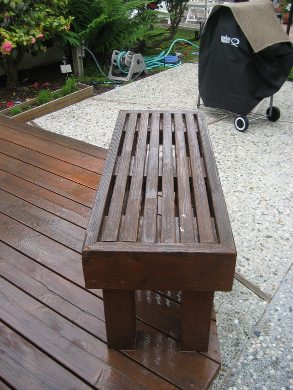 I was going for a bench before and after even though the after isn’t really a true after because the stain is still wet there. Plus the pictures are at different zoom levels. I wasn’t going to post such amateur art.