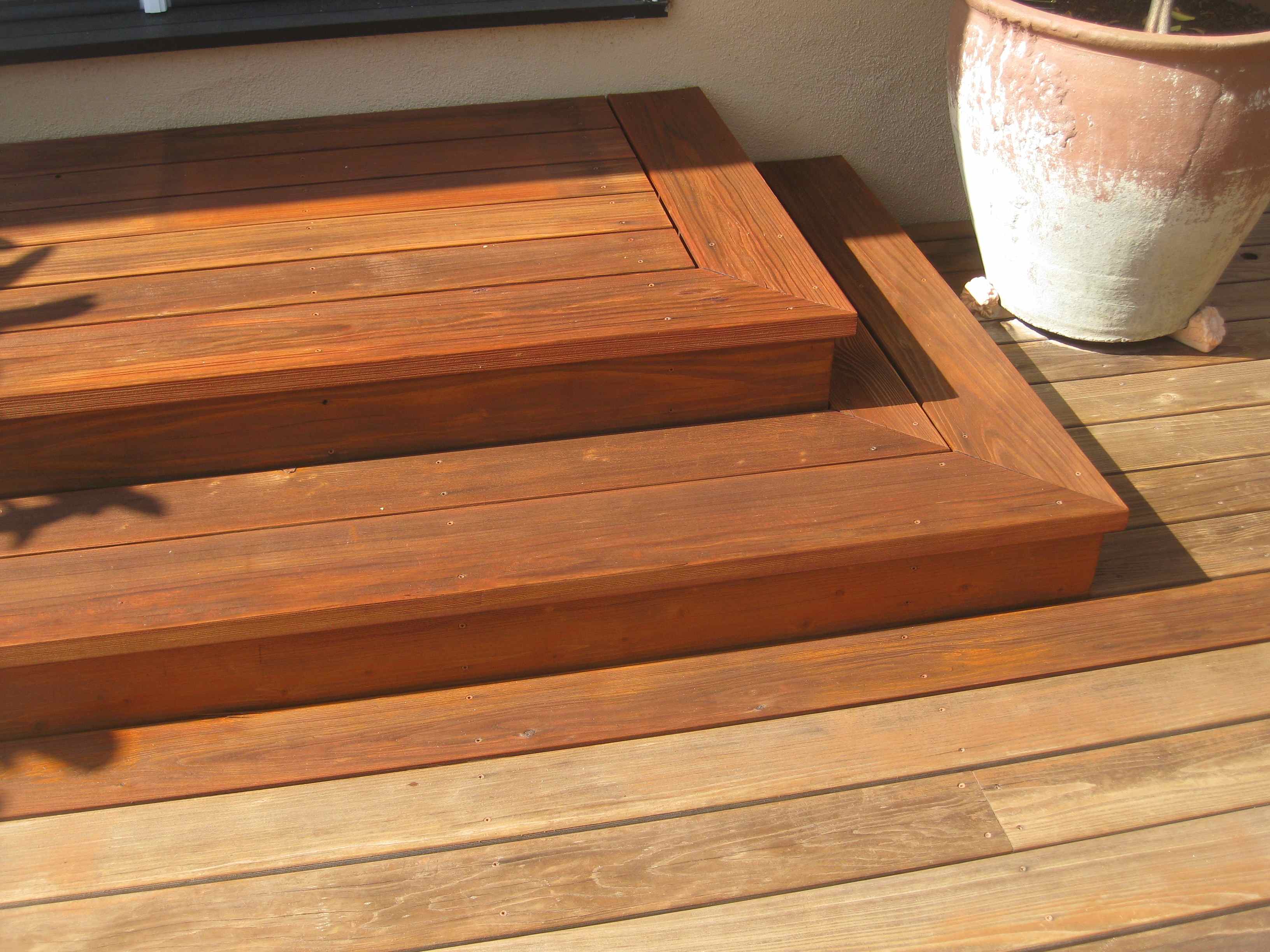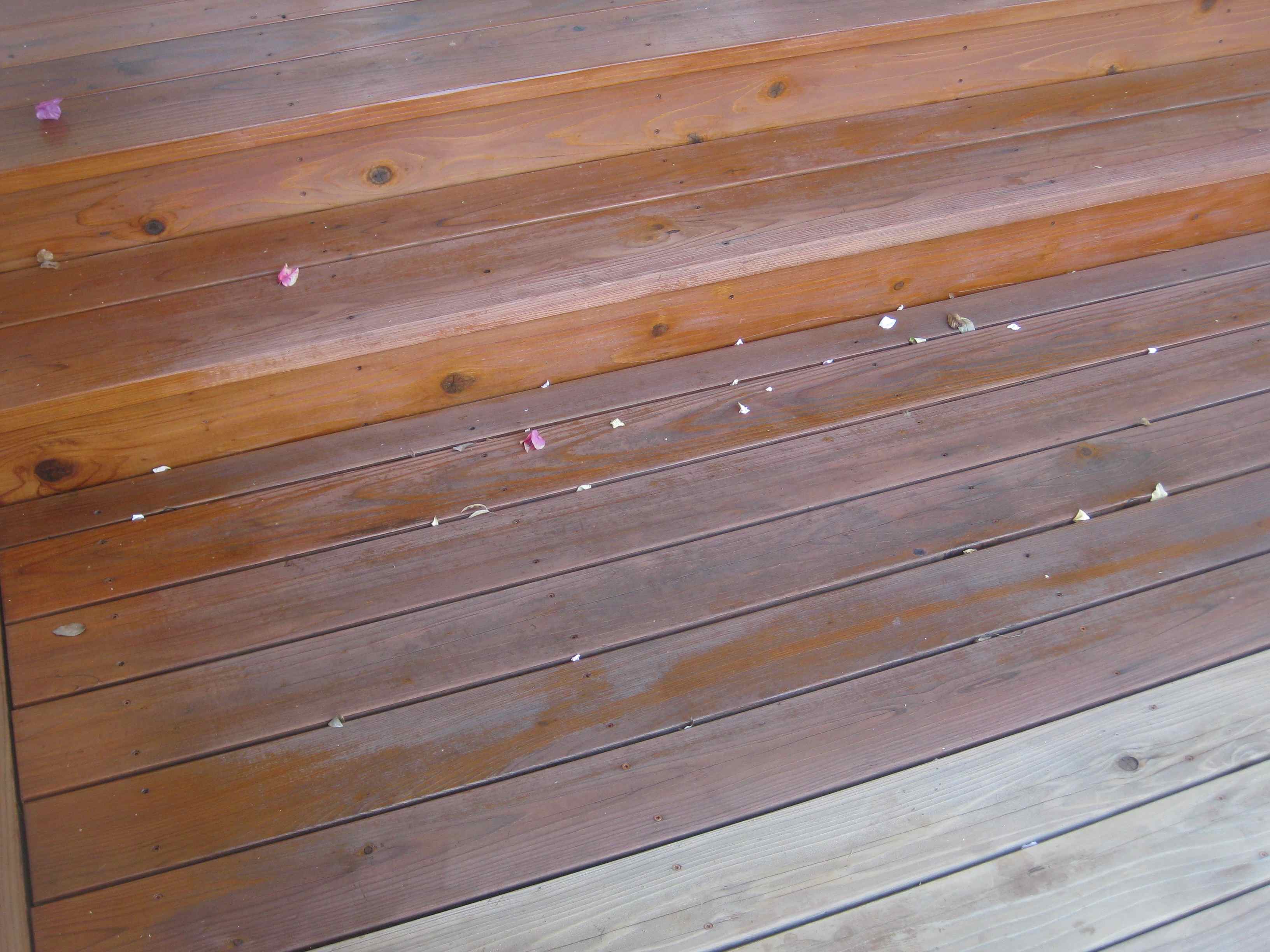 One picture is in the morning sun. The other is after the sun has moved off the deck. Just a couple different looks from a couple different times of day. The beauty of transparent material. This five year old deck off of Western Avenue near UCSC campus. It does get direct sun for about four hours per day. This was our first time washing and staining this particular deck. This is about what can be expected in terms of color using Redwood Tone-Biowash Natural Deck Oil.